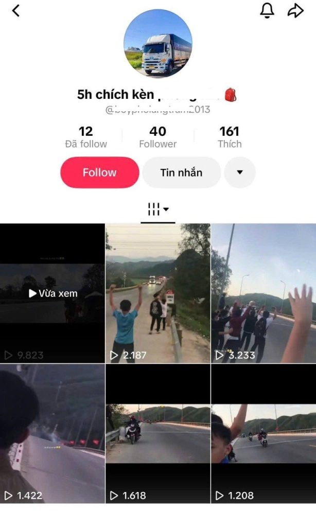 Qua nắm bắt tình hình trên không gian mạng, công an xã phát hiện một tài khoản TikTok thường xuyên đăng tải video nhiều học sinh ra đường nhảy múa với xe tải để nhận hiệu ứng còi phản hồi theo điệu nhạc.