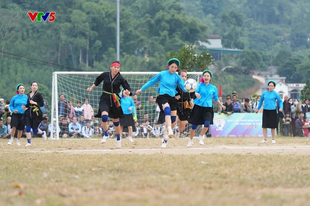 Điểm đặc sắc của giải đấu không chỉ là những bàn thắng, mà còn là sự hòa quyện giữa thể thao và văn hóa dân tộc. Các nữ cầu thủ khoác lên mình trang phục truyền thống, bước ra sân cỏ với sự tự tin, mạnh mẽ, nhưng vẫn giữ nét duyên dáng riêng. Nhiều thế hệ, từ cụ ông, cụ bà đến học sinh, hòa nhịp cổ vũ, tạo nên một bức tranh sinh động về cộng đồng vùng cao gắn kết và tràn đầy năng lượng.