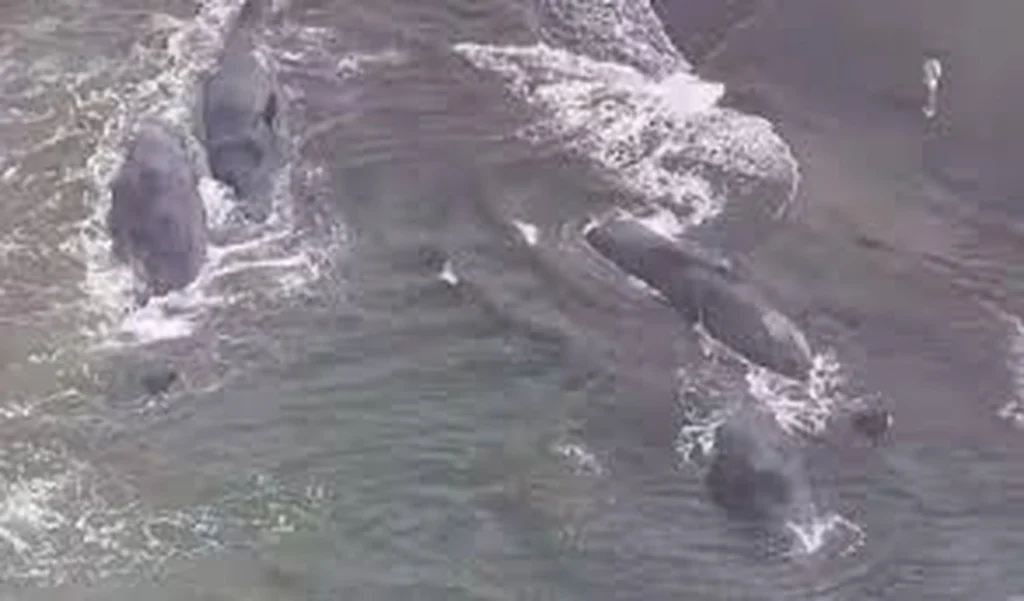 Cảnh hàng trăm con sử tử biển lao xuống biển trốn chạy trước khi sóng thần ập tới (Nguồn video: Reuters)