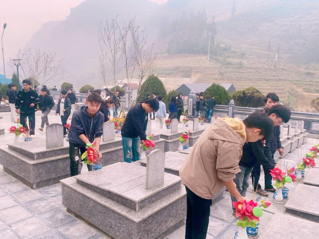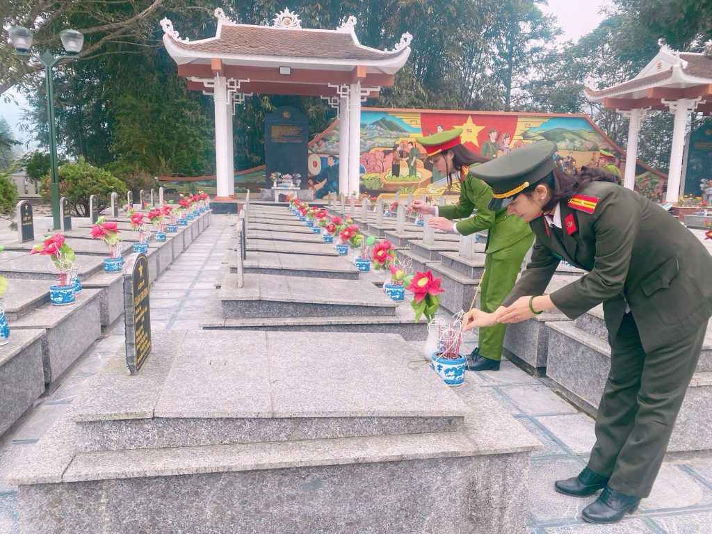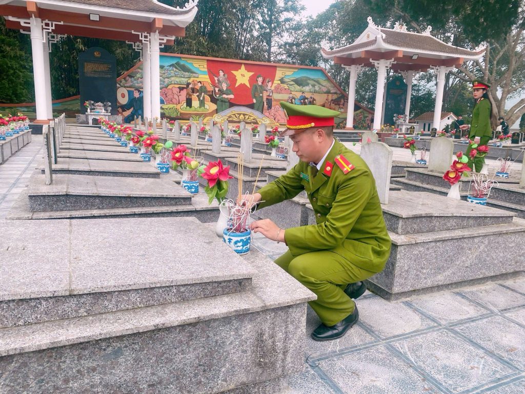 Trong khuôn khổ chương trình, Công an xã Bắc Hà đã tổ chức cho 60 bạn học sinh đang theo học tại Trung tâm Giáo dục nghề nghiệp và Giáo dục thường xuyên Bắc Hà thắp hương tưởng niệm các liệt sĩ, tham gia lao động vệ sinh tại Nghĩa trang liệt sĩ của xã. Dưới sự hướng dẫn, giám sát trực tiếp của lực lượng Công an xã và các thầy cô giáo, các em đã tiến hành quét dọn khuôn viên, làm sạch lối đi, thu gom rác thải và chỉnh trang khu vực bia mộ liệt sĩ. Hoạt động diễn ra nghiêm túc, nền nếp, bảo đảm an toàn và mang ý nghĩa giáo dục sâu sắc.
