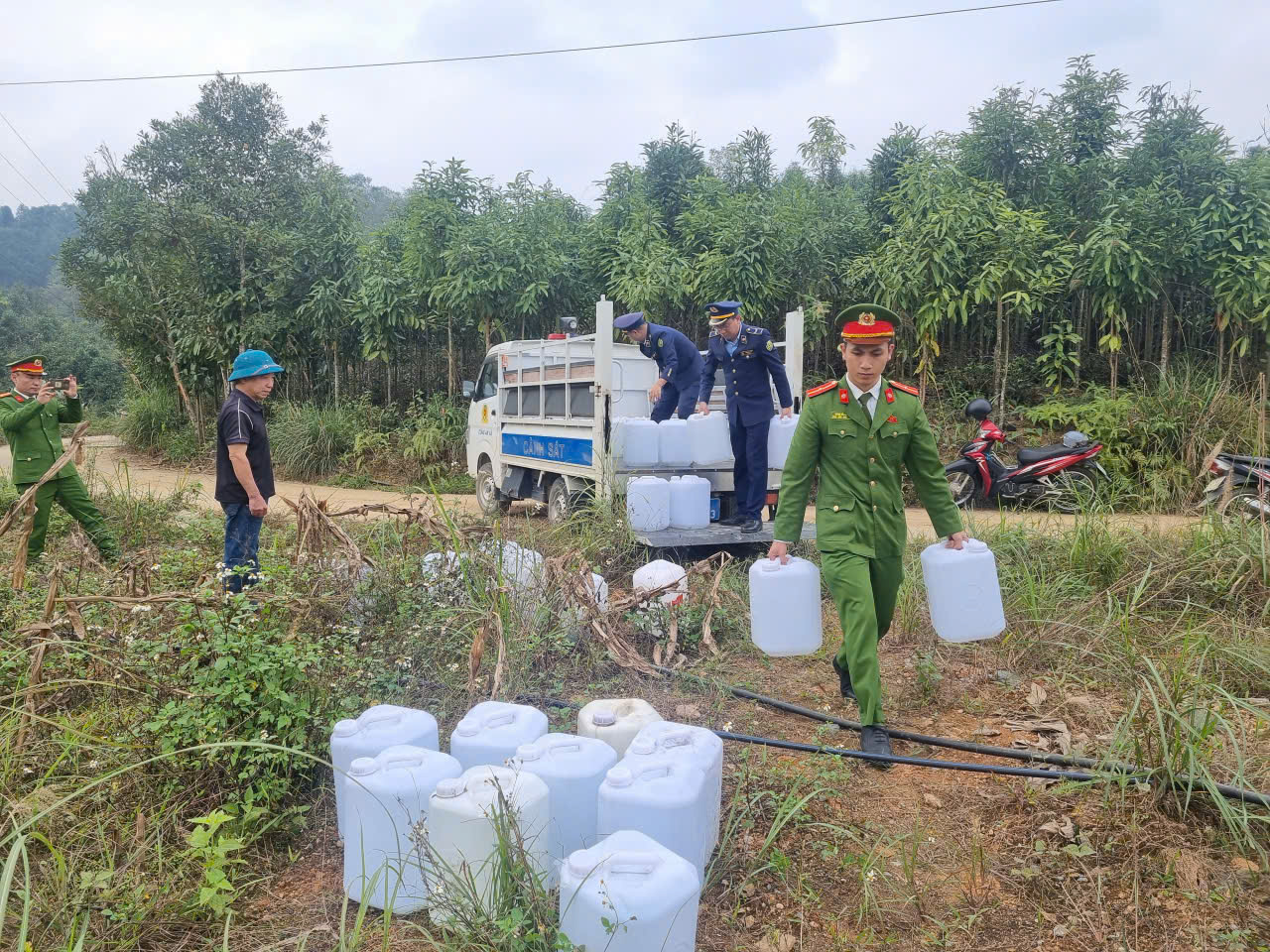 Tại thời điểm kiểm tra, ông K.D.T không xuất trình được bất kỳ hóa đơn, chứng từ hay giấy tờ hợp pháp nào chứng minh nguồn gốc, xuất xứ của số hàng hóa nêu trên. Toàn bộ các can rượu đều không có nhãn hàng hóa, không thể xác định nơi sản xuất, đơn vị sản xuất và tổ chức, cá nhân chịu trách nhiệm.