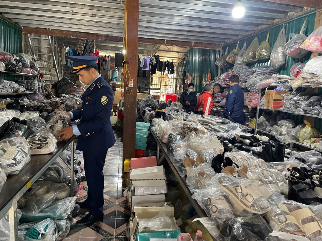 Lực lượng Quản lý thị trường tỉnh Lào Cai kiểm tra hàng hóa tại cơ sở kinh doanh
