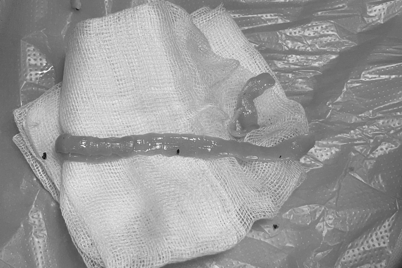 Khoảng hai tuần trước đó, dù ăn uống, sinh hoạt bình thường nhưng anh vẫn bị sụt 2kg. Đáng lo ngại, trong quá trình đi ngoài, bệnh nhân nhiều lần phát hiện những đoạn trắng ngà giống sợi phở, có hiện tượng ngọ nguậy, một số đoạn dài tới khoảng 30cm và có khả năng di chuyển.
