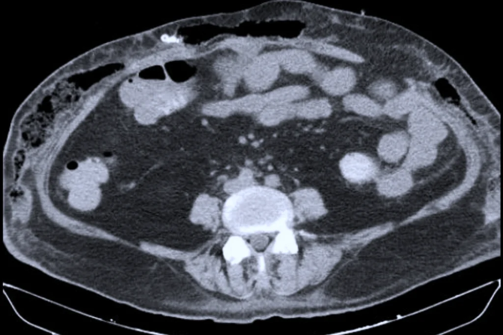 Hình ảnh CT ổ bụng của bệnh nhân (Ảnh: Bác sĩ cung cấp.)