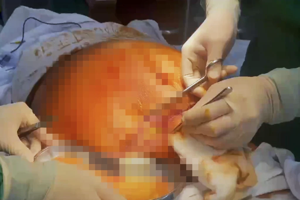 Các bác sĩ tiến hành phẫu thuật xử trí cho bệnh nhân bị biến chứng nặng sau hút mỡ (Ảnh: Bác sĩ cung cấp).