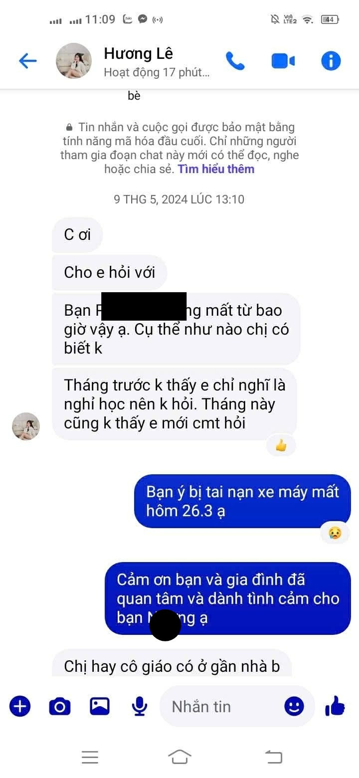 Không chỉ vậy, sau khi đã chuyển phí, suốt hai tháng liền chị không thấy cập nhật hình ảnh của bé. Đến tháng 5/2024, khi tự liên hệ với giáo viên chủ nhiệm, chị mới bàng hoàng biết em nhỏ đã mất do tai nạn trước đó hai tháng.
