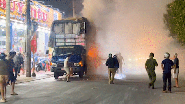 Tối 9-12, xe tải chở gỗ chạy trên đường Từ Văn Phước, phường An Phú, TP.HCM bất ngờ bốc cháy, khói đen bao trùm đoạn đường. Tài xế kịp đánh lái đưa xe ra xa khu nhà dân, lực lượng PCCC đến dập tắt, không thiệt hại về người.